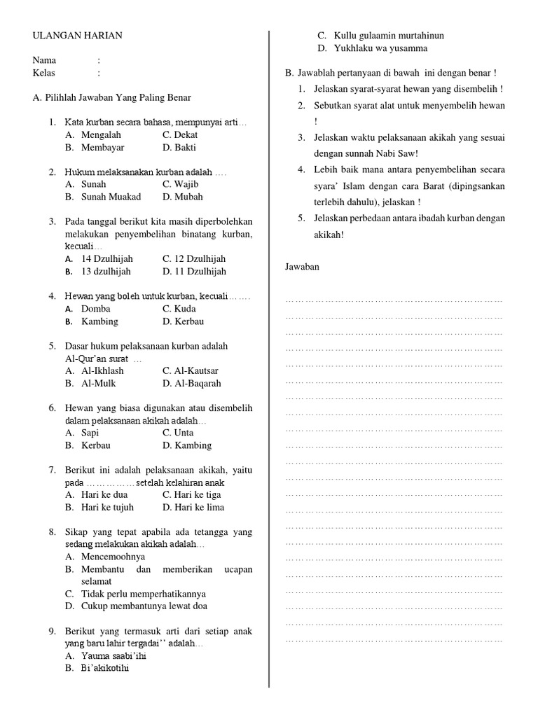 Upacara aqiqah biasanya dilakukan dengan prosesi penyembelihan hewan ternak. Perbedaan dari segi arti hukum waktu syarat hewan. Contoh soal kurban dan aqiqah assalamu 'alaykum pada mata pelajaran pendidikan agama islam kita mendapati materi tentang kurban dan aqiqah. Penyembelihan hewan standar kompetensi : Hukum akikah menurut pendapat yang paling kuat adalah sunah muakadah.